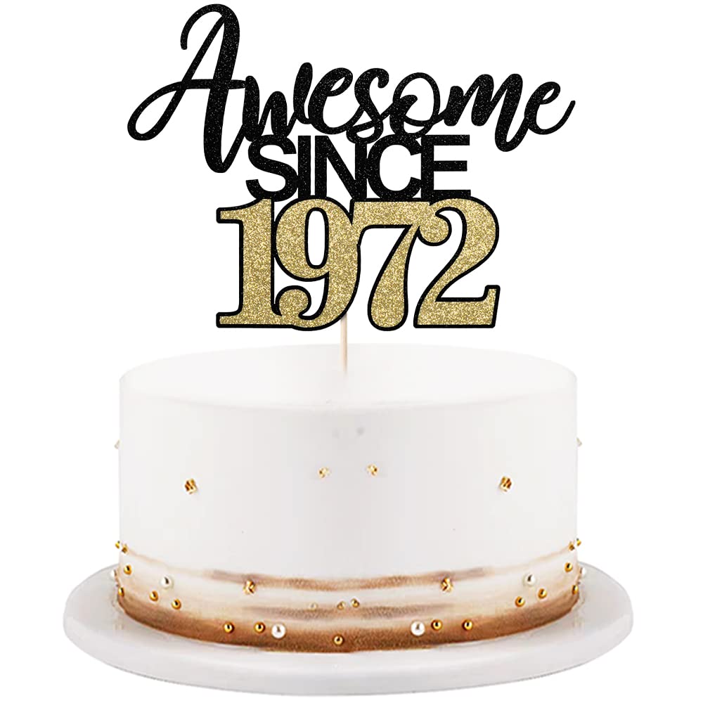Amazon Com Black And Gold Flash Awesome Since 1972 Cake Topper Happy 50th Birthday Cake Topper Glitter Happy Fifty Birthday Cake Topper Hello 50 Cheers To 50 Years Funny 50 And Fabulous Party Decoration Supplies